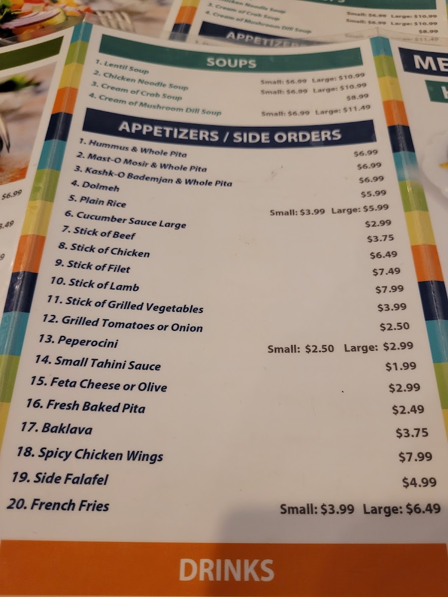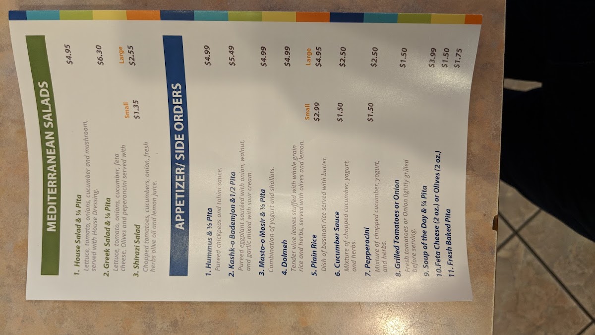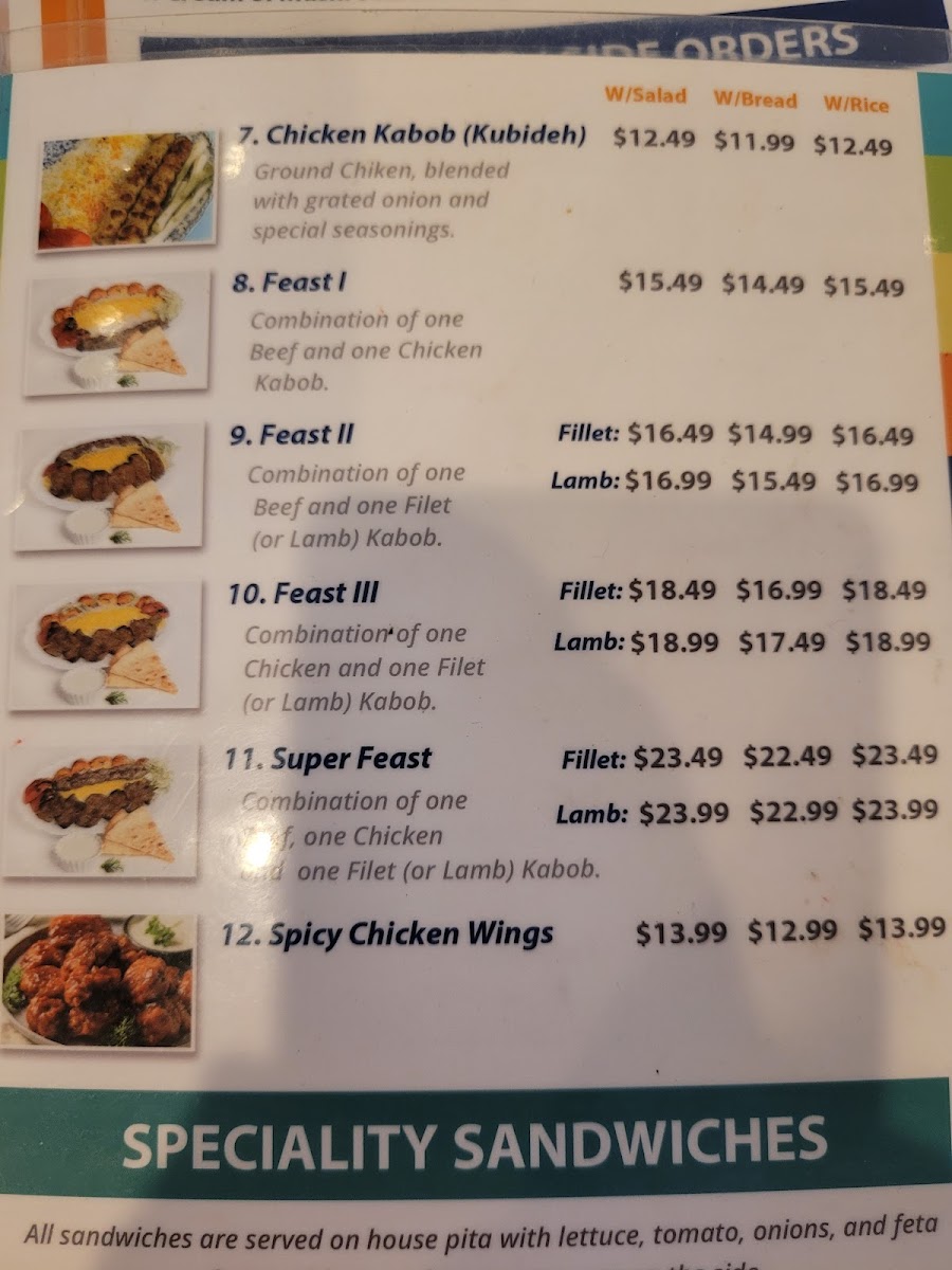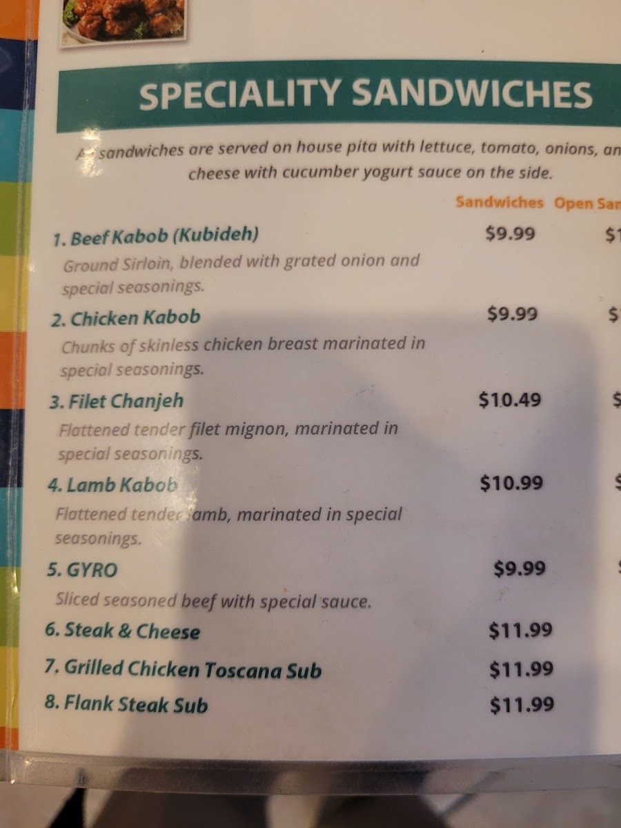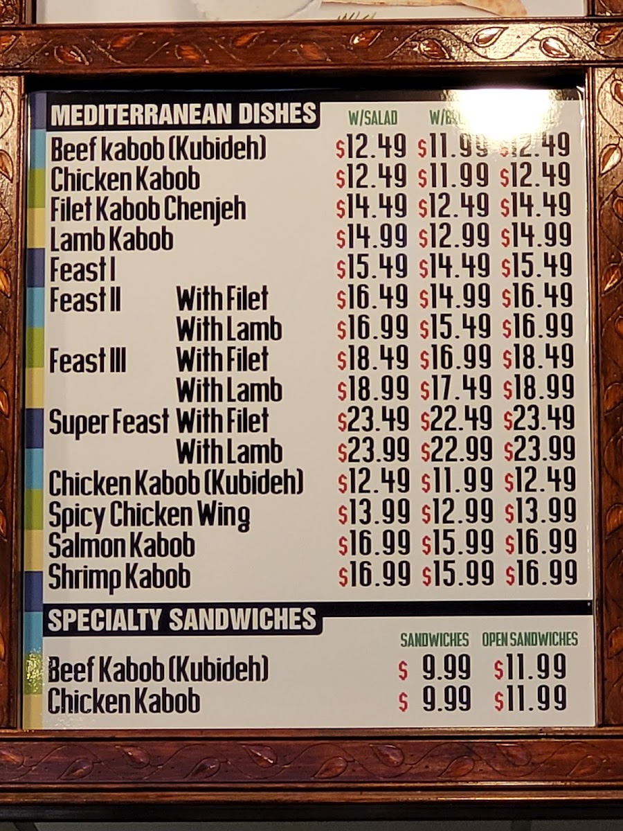 The moment you step inside, you are greeted by the warm aroma of freshly baked pita, an unbeatable starter that perfectly embodies the restaurant's commitment to authenticity. The Filet Chanjeh, Lamb Kabob, and mouthwatering Gyro stand out as highlights on the menu. The Chicken Kabob is another crowd favorite, praised for its succulent tenderness and expertly grilled flavor. If you prefer a twist on traditional sandwiches, consider the CheeseSteak Sub or the FLAT MEDITERRANEAN GRILLED CHICKEN SUB—both offer a delicious fusion of flavors that are sure to delight your palate.